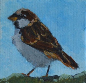 2021De vos kijkt om zich heen, op zoek naar een prooi in of onder de sneeuw. Geschilderd op canvasboard.